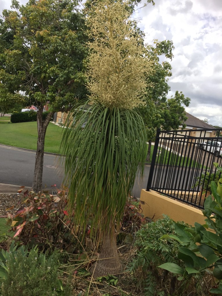 I discovered, also, the real beauty of ‘Pony Tail’ palms that have decided to blossom all round our neighbourhood for the first time in a decade. Apparently that is the plants’ normal cycle, bringing much amazement and pleasure to garden lovers.